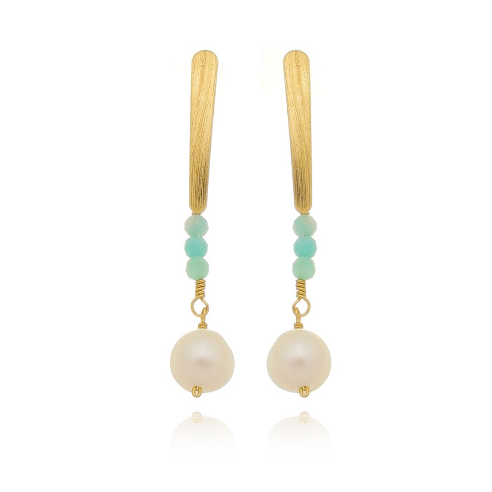 Lindo Par de Brincos com Pedras e Pérolas Naturais.