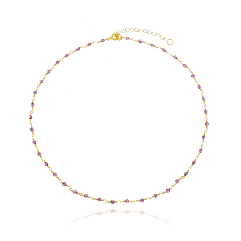 Lindo Colar Banhado a Ouro 18k com Pedras Naturais Ametistas.
