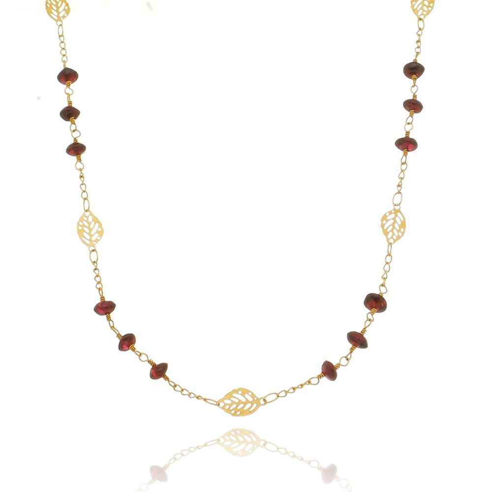 Lindo Colar de Pedras Naturais Granadas Banhado a Ouro 18k.