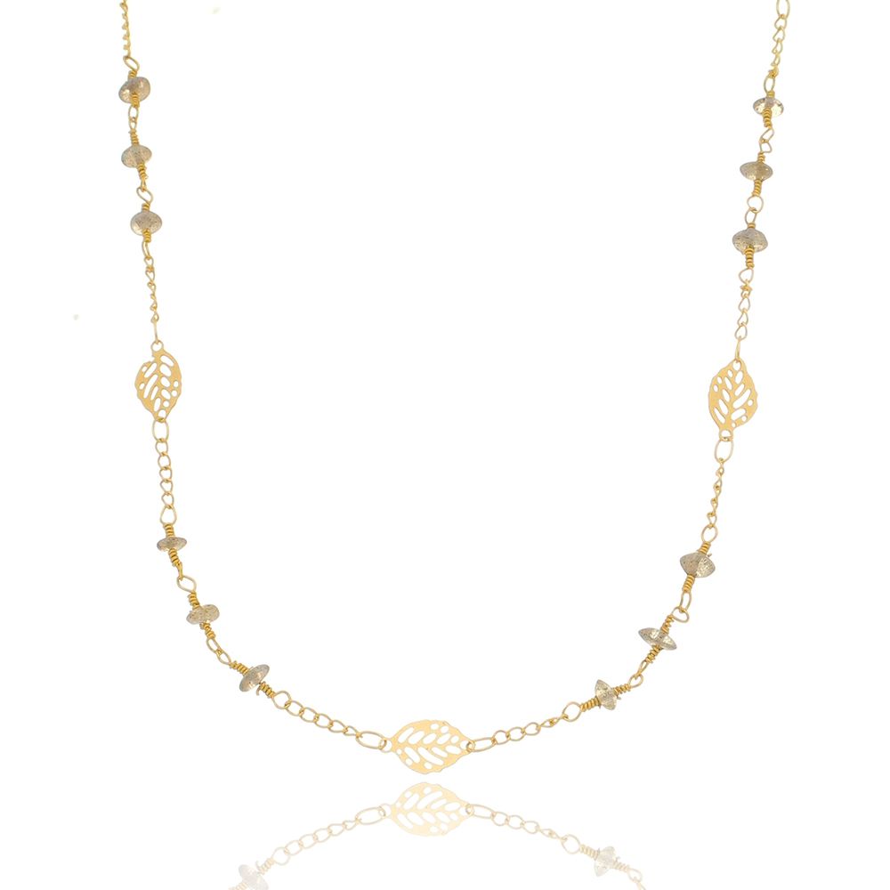 Lindo Colar de Pedras Naturais Labradorita Banhado a Ouro 18k.