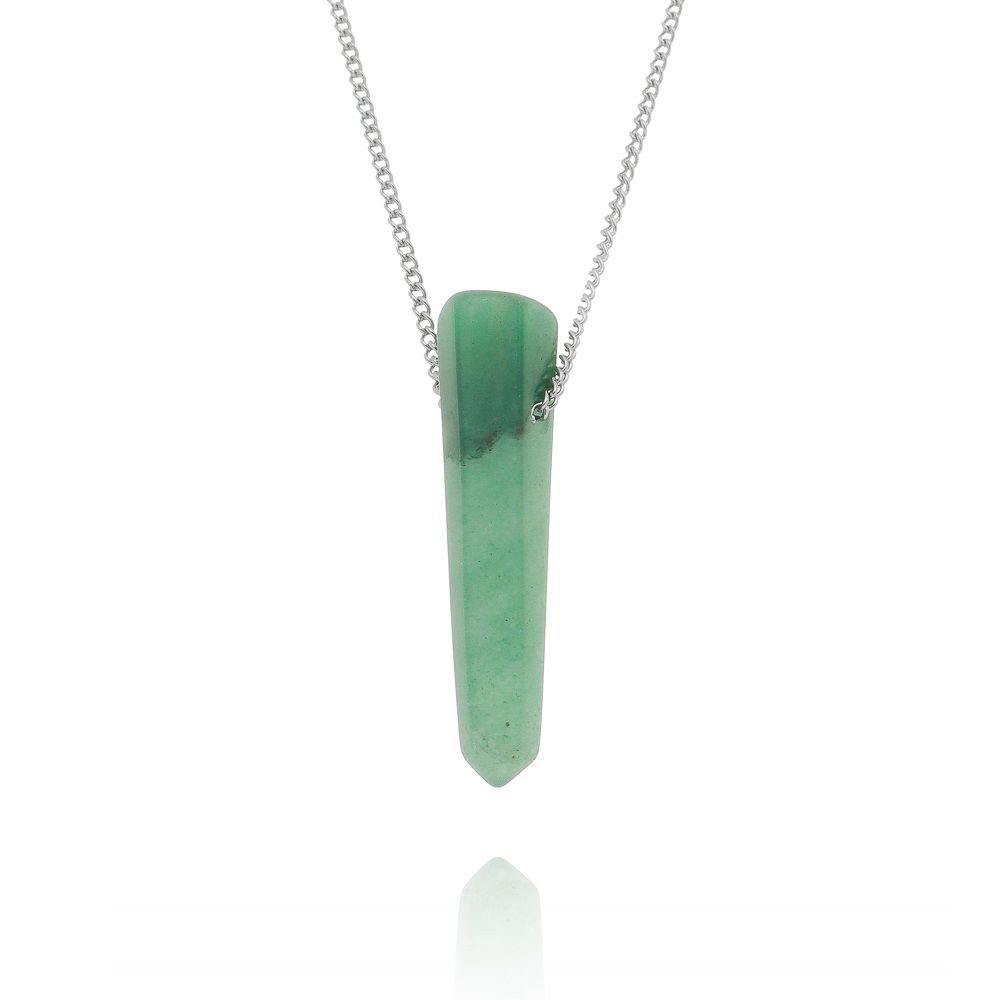 Cordão de Aço Inox com Pingente Difusor de Aromas Pedra Quartzo Verde.
