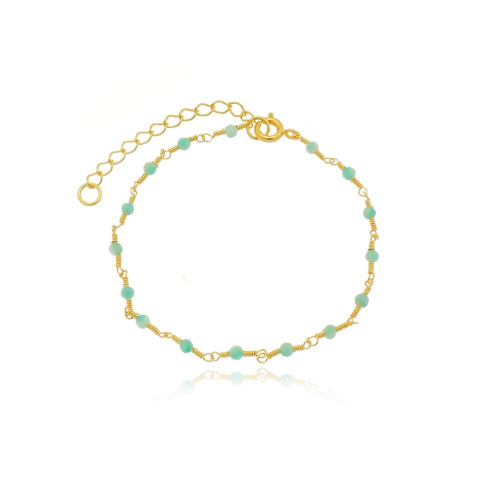 Linda Pulseira Banhada a Ouro 18k com Pedras Naturais Amazonita.