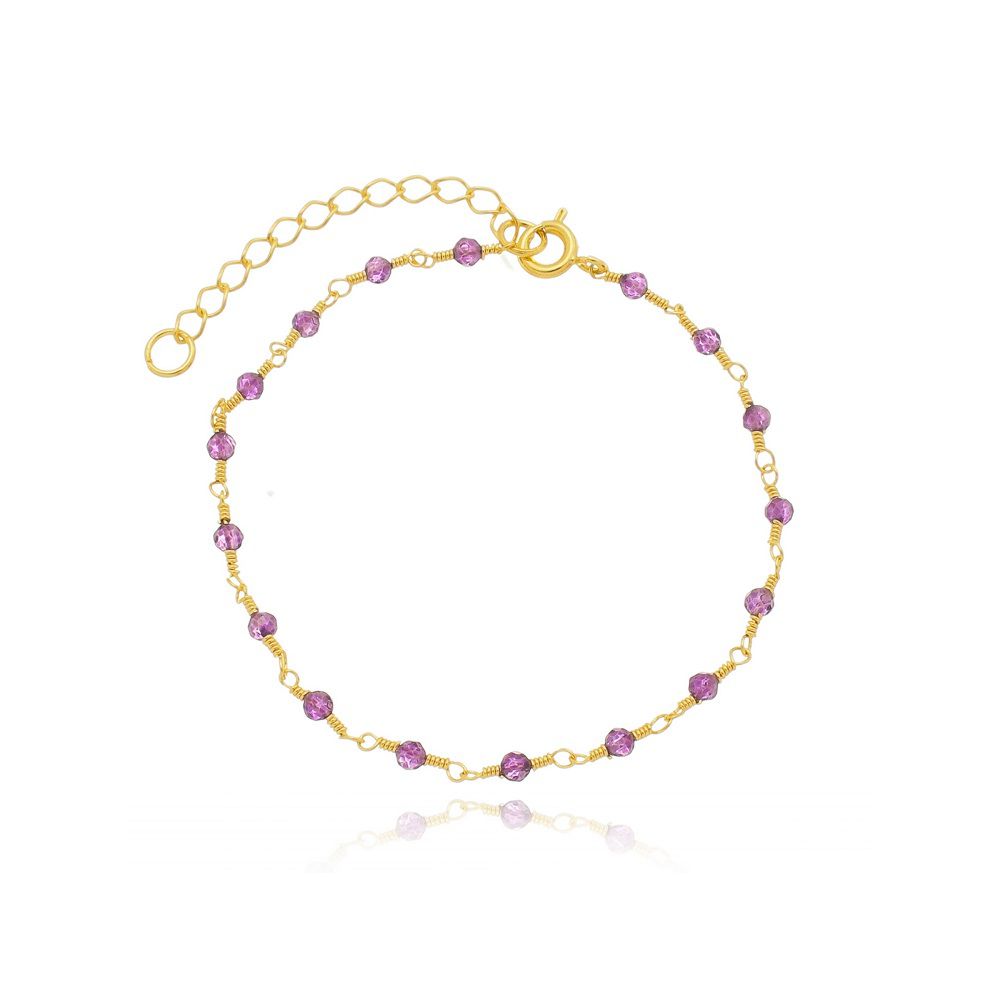 Linda Pulseira Banhada a Ouro 18k com Pedras Naturais Ametista.